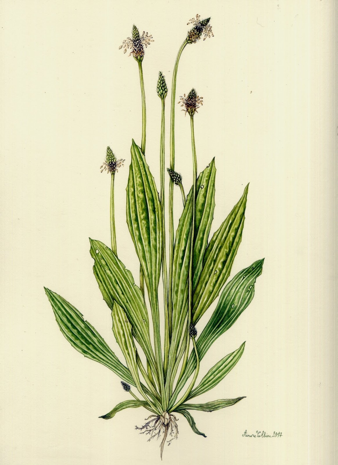 Le plantain est particulièrement intéressant en promenade lorsque vous venez de toucher des orties, de vous faire piquer par un moustique,… Il suffit d’arracher, une feuille, de la broyer entre vos doigts et de la frotter sur l’endroit de la démangeaison. Ses effets son immédiats. Il a plusieurs cordes à son arc : apaisant, cicatrisant, anti-inflammatoire, antiseptique, anti-rides. Il nettoie la peau, les plaies, les infections oculaires. Parfait pour le soin des yeux, les dermatoses, les piqûres d’insectes, les rhumatismes, l’arthrose,… Il est astringent et hémostatique ! Bref, réfléchissez bien avant de l’écraser sans vergogne lors de votre prochaine promenade en nature. C’est une plante magique !